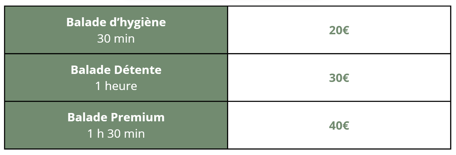 Des arrhes de 50% seront demandées lors des réservations, le reste du paiement s’effectuera au plus tard au premier jour de visite de l’animal (ou en totalité lors de la réservation selon votre préférence).